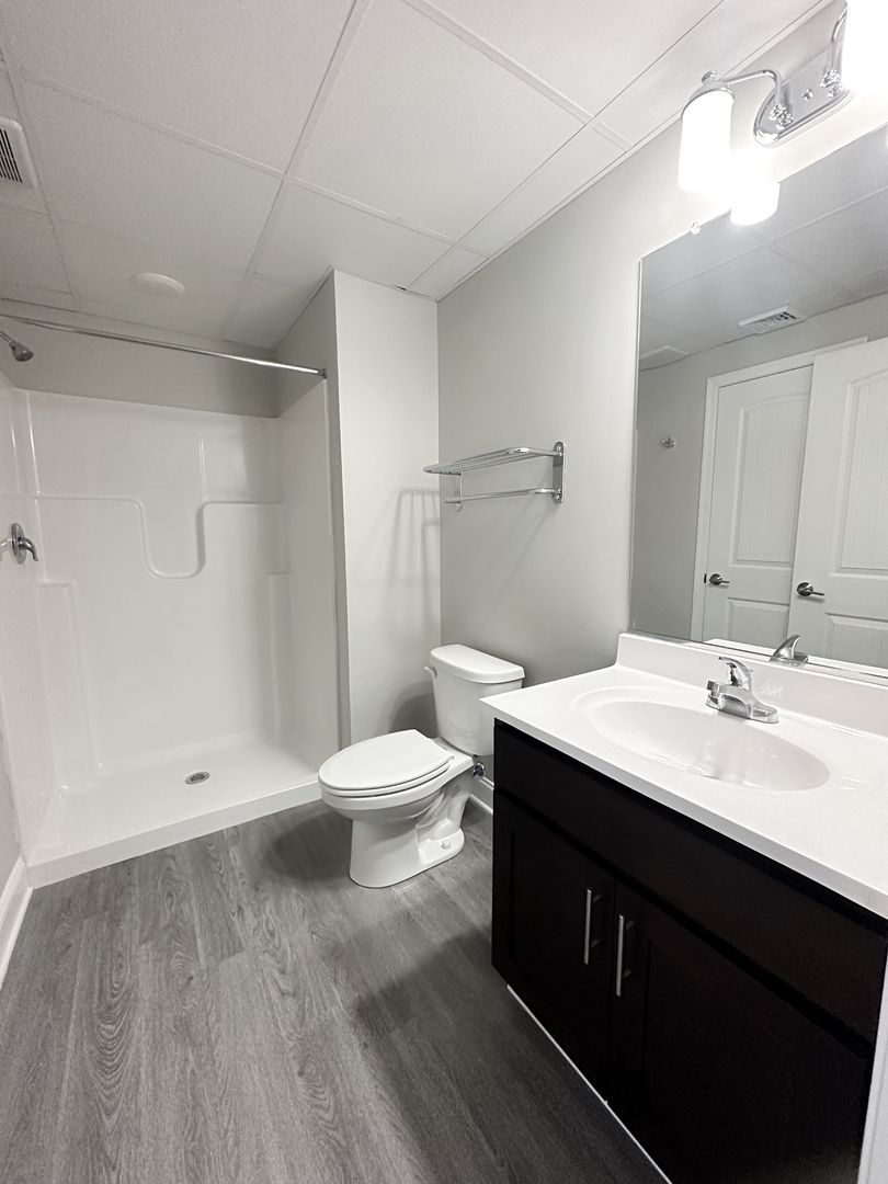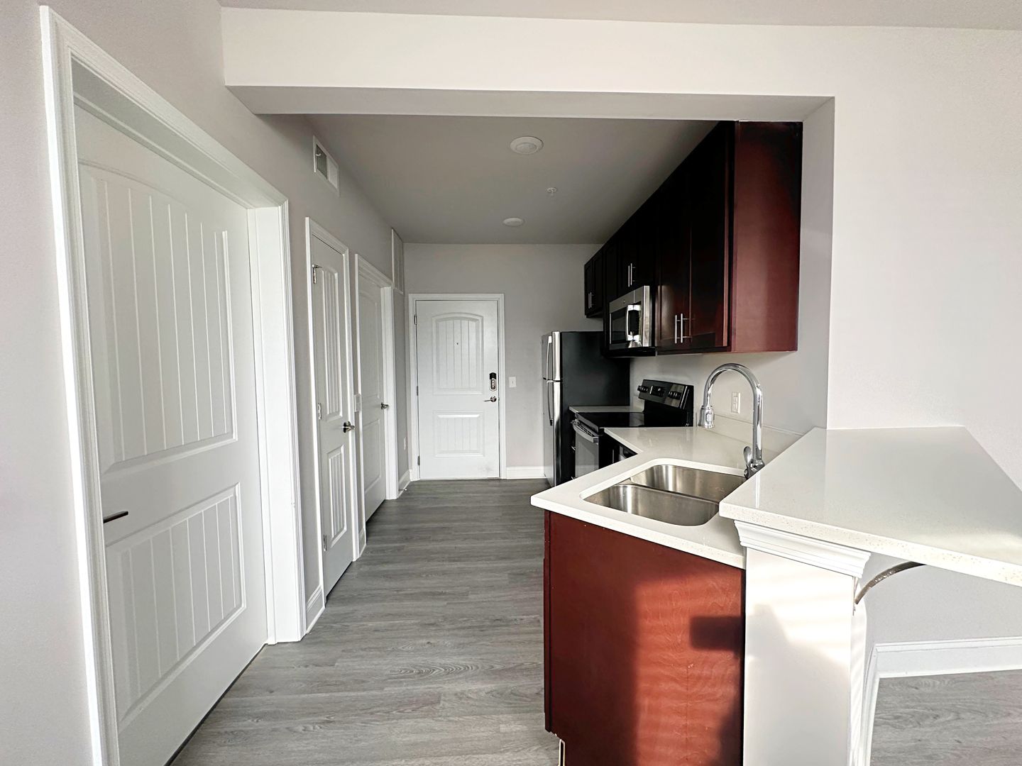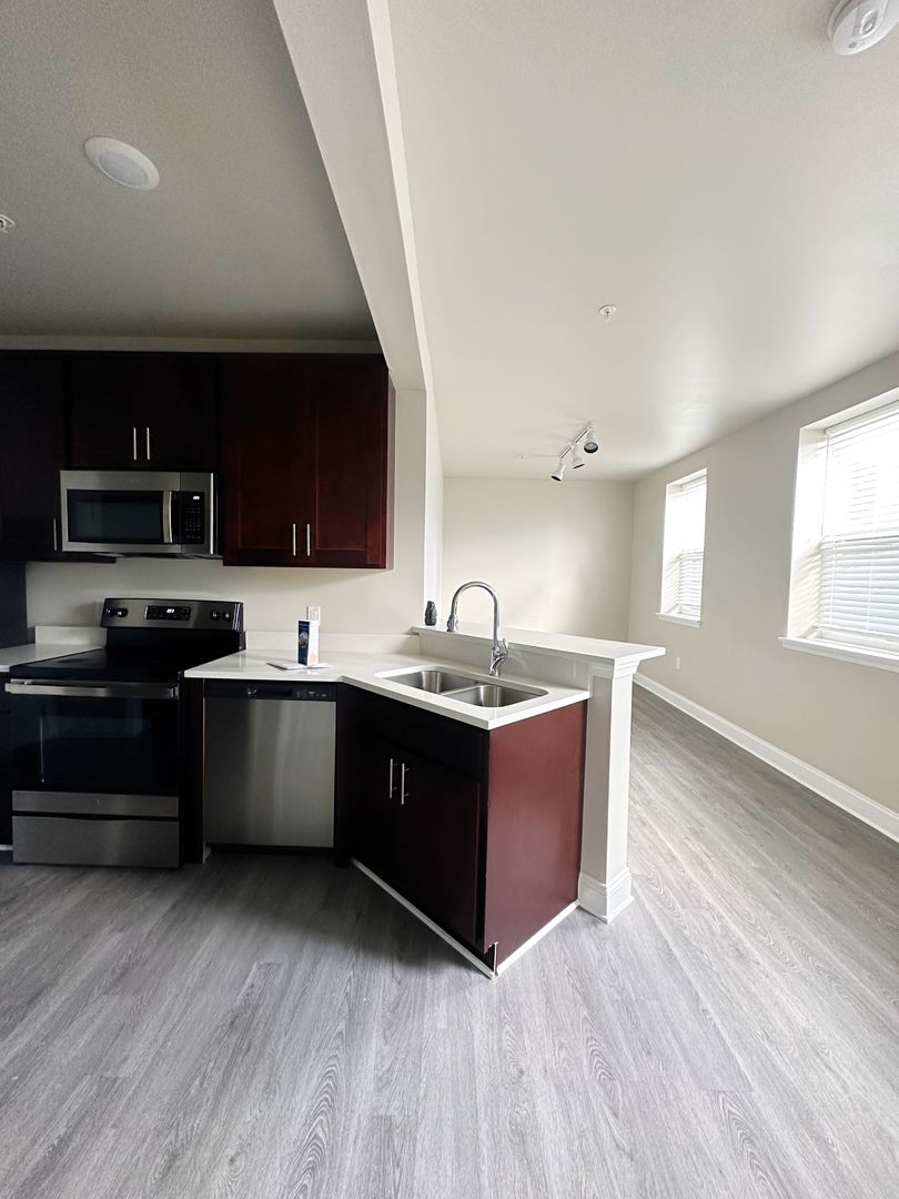Immerse yourself in a harmonious blend of style and comfort with LAYLA our modern 1 bed, 1 bath apartment. The beautiful, angled kitchen welcomes you with a seamless flow to a stylish bar top counter, leading to a spacious living room.